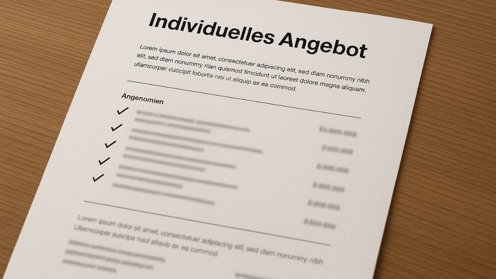 Sie erhalten ein strukturiertes, individuell auf Ihr Unternehmen zugeschnittenes Angebot – mit klar definierten Leistungen, Zeitrahmen und Investitionsübersicht. Ob Technologieberatung, Designkonzepte oder KI-gestützte Systeme: Unser Angebot spiegelt genau wider, was Ihr Projekt braucht, um erfolgreich zu sein.