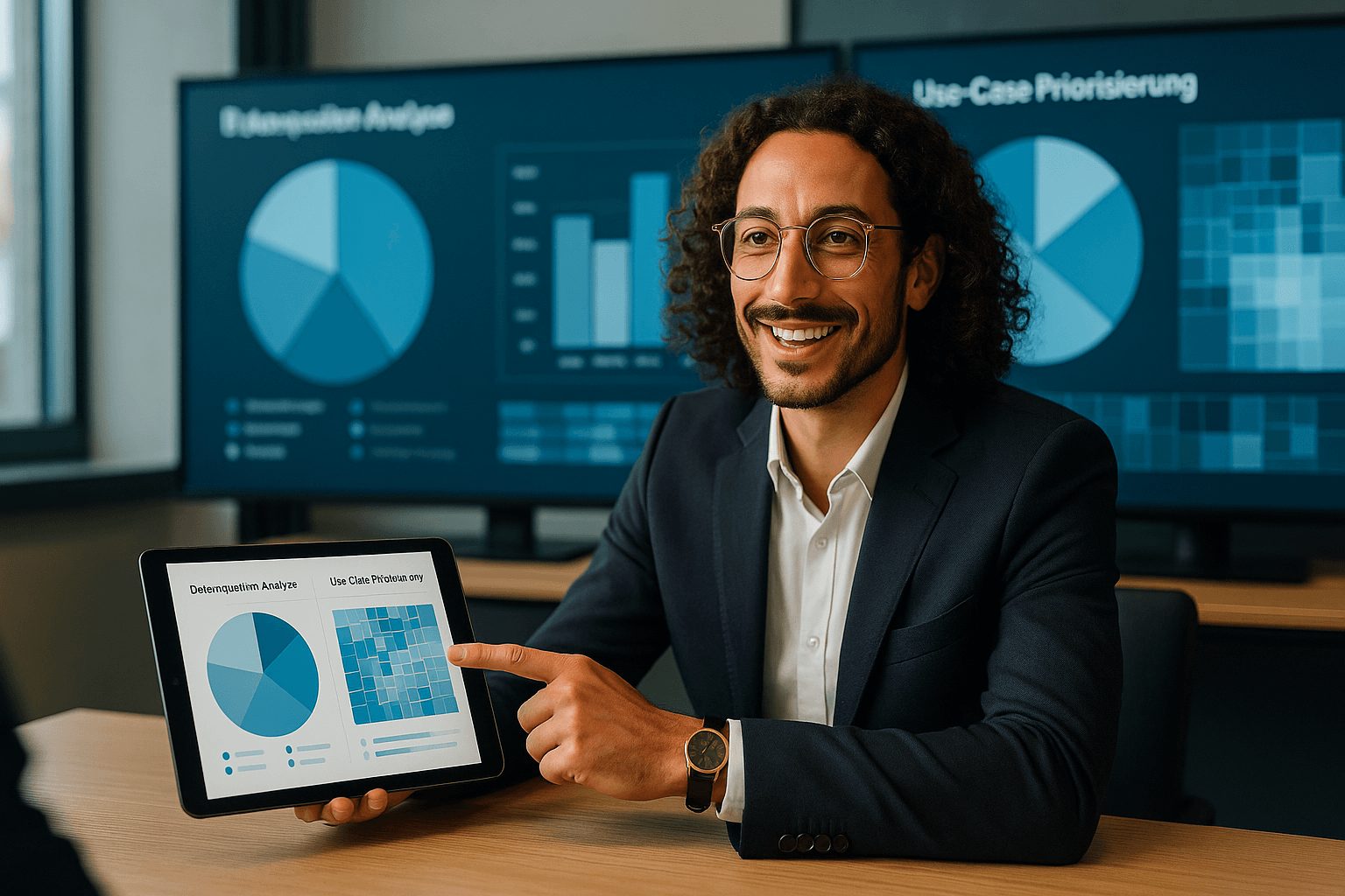 Gemeinsam definieren wir Ihr Geschäftsproblem und entwickeln erste Anwendungsfälle. Anschließend führen wir einen Proof of Concept durch, um Ergebnisse greifbar zu machen. Mit bewährten Tools und Methoden setzen wir Ihre KI-Lösung um und sorgen für das nötige Change-Management, damit Ihre Teams die Technologie annehmen. Abschließend messen wir die Performance anhand festgelegter KPIs und sichern so Ihren ROI – für echte, datengestützte Wettbewerbsvorteile.